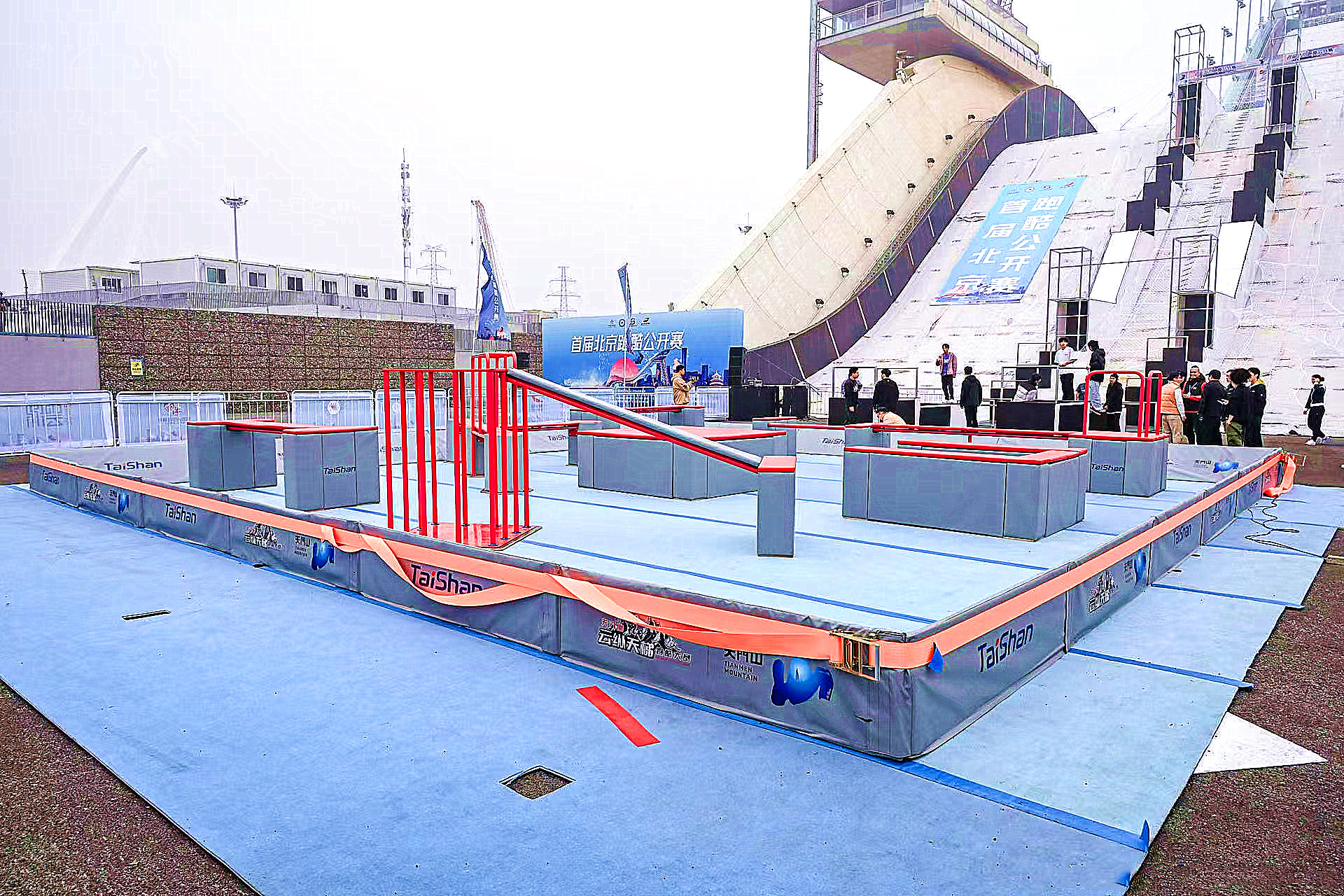 比赛以大跳台及其落地区域为赛场,搭建形成多组颜色鲜艳、各具特点的跑酷赛场。其中大跳台跑酷竞速赛道最为亮眼,赛道在大跳台本体上搭建而成,由大跳箱、滑梯、单杠、速降杆等大型专业跑酷道具组成,为目前全球最陡上升赛道,这对pg电子体育安装团队和跑酷器材场地适用性,又是一次严苛检验。