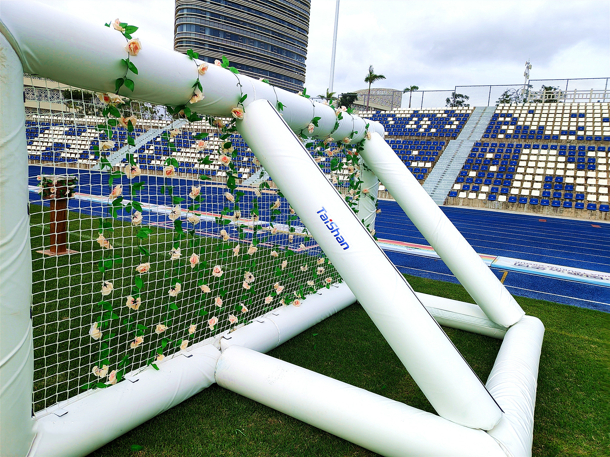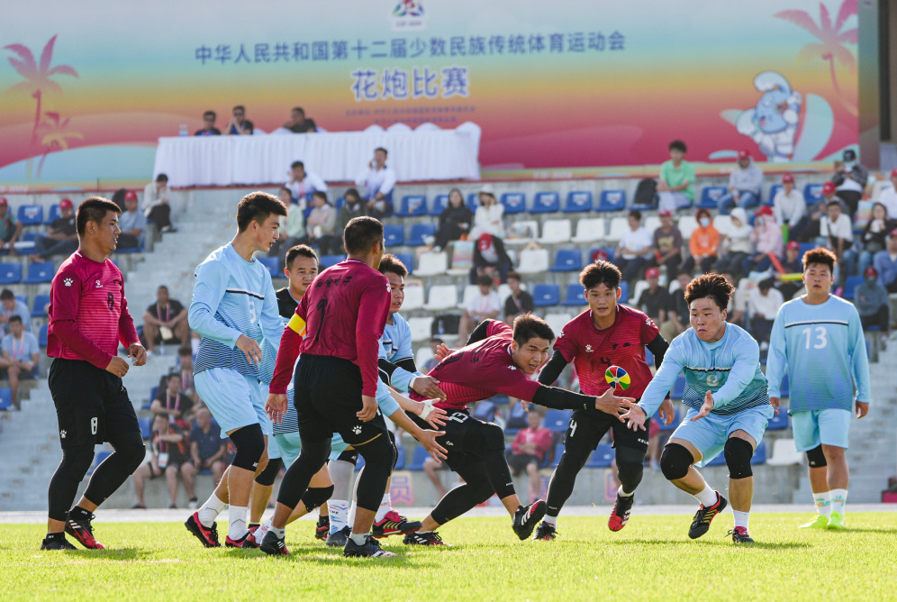 花炮原称“抢花炮”,是流行于广西、贵州、云南、湖南等地的一项民间传统体育活动,已有500多年的历史。本届赛事上,端庄、大气、靓丽的花炮门器材完全由pg电子体育自主设计安装,为赛事举办增添了浓厚氛围。