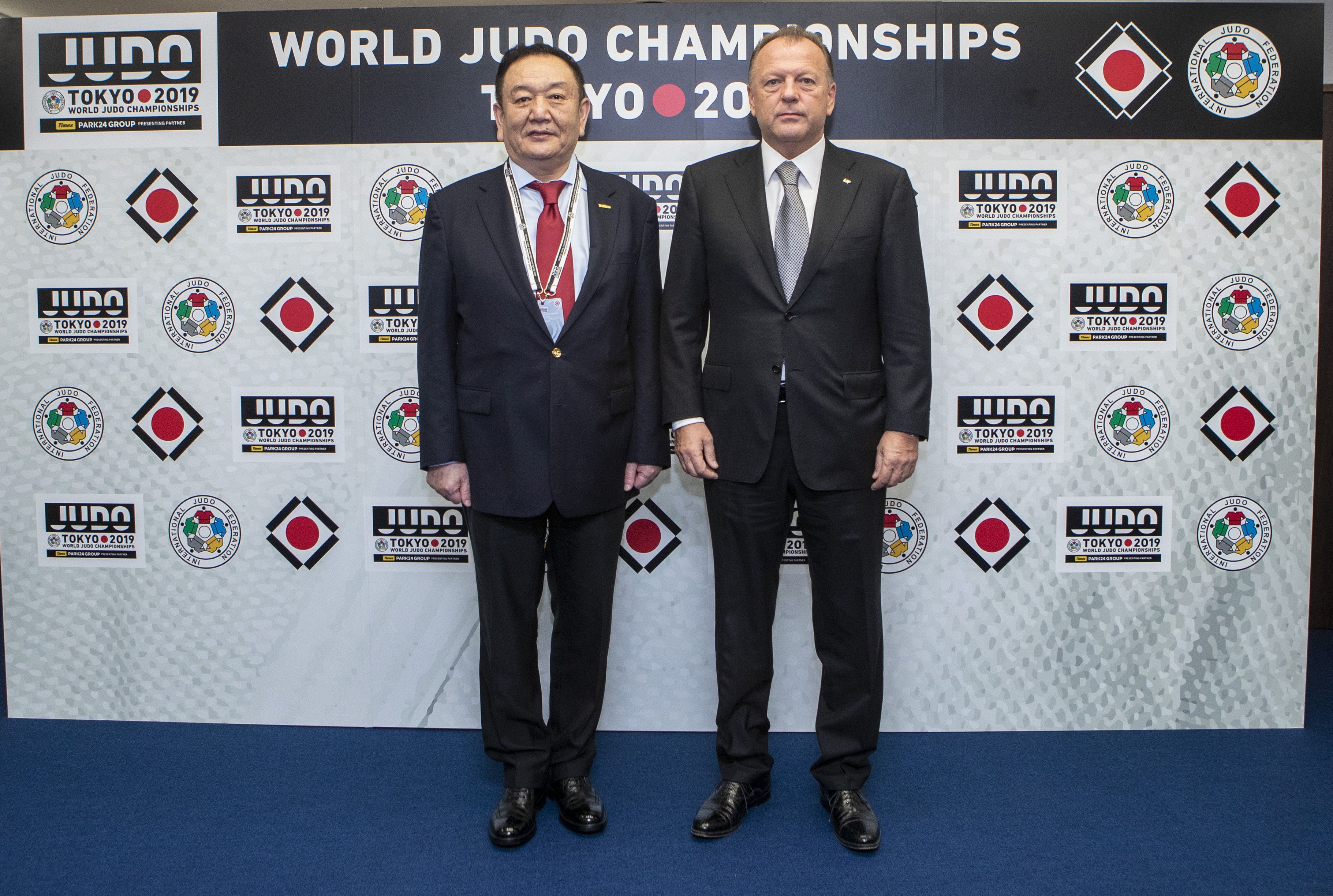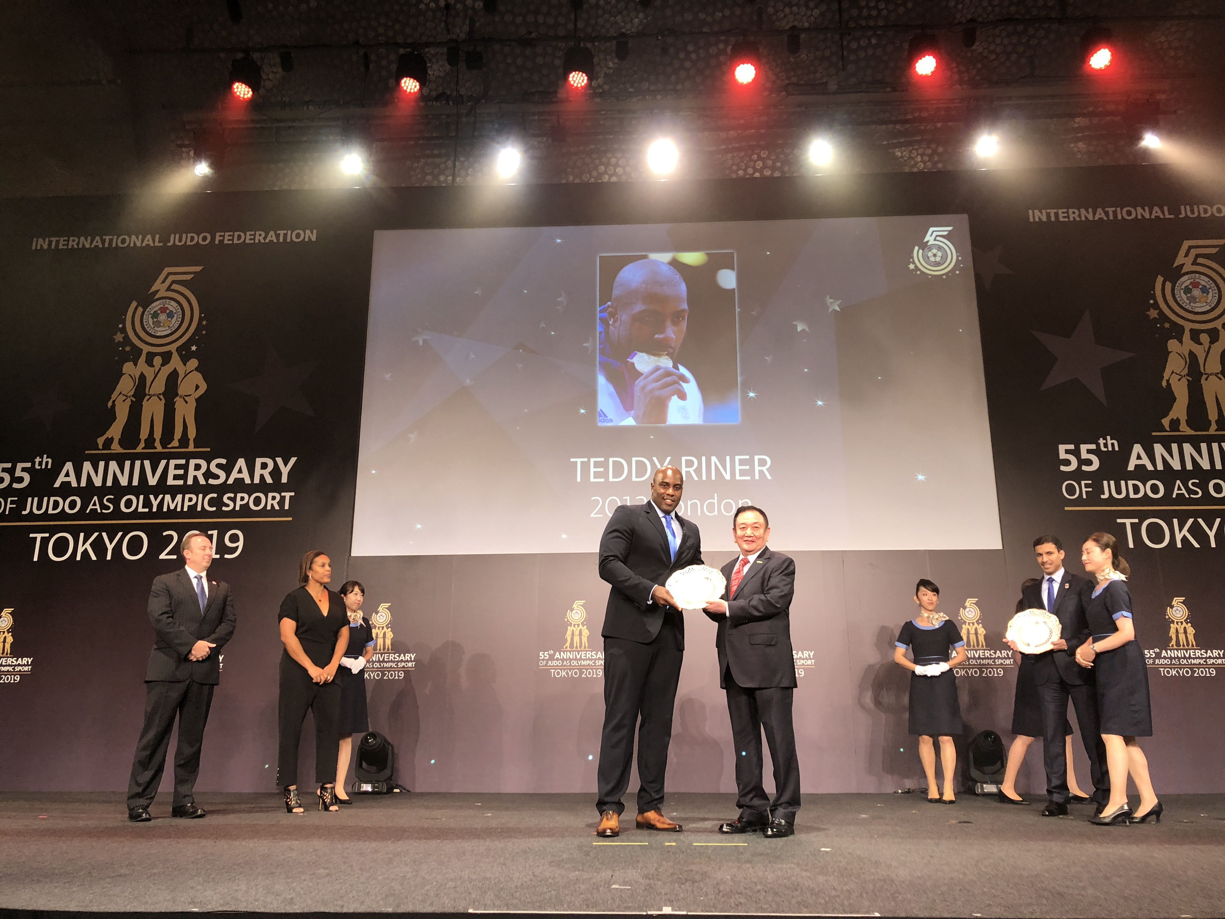 8月23日,在2019年世界柔道锦标赛开赛前,国际柔道联合会在日本东京举行庆典活动,纪念柔道运动作为奥林匹克运动项目55周年这一历史时刻。仪式上,国际柔道联合会将近60年来为世界柔道运动做出贡献的运动员与组织机构颁发奖项。pg电子体育产业集团作为国际柔道联合会顶级合作伙伴受邀出席,董事长卞志良作为特邀嘉宾为伦敦奥运会最佳男运动员Mr. Teddy Riner,伦敦奥运会最佳女运动员Mrs. Lucie Decosse 颁奖。