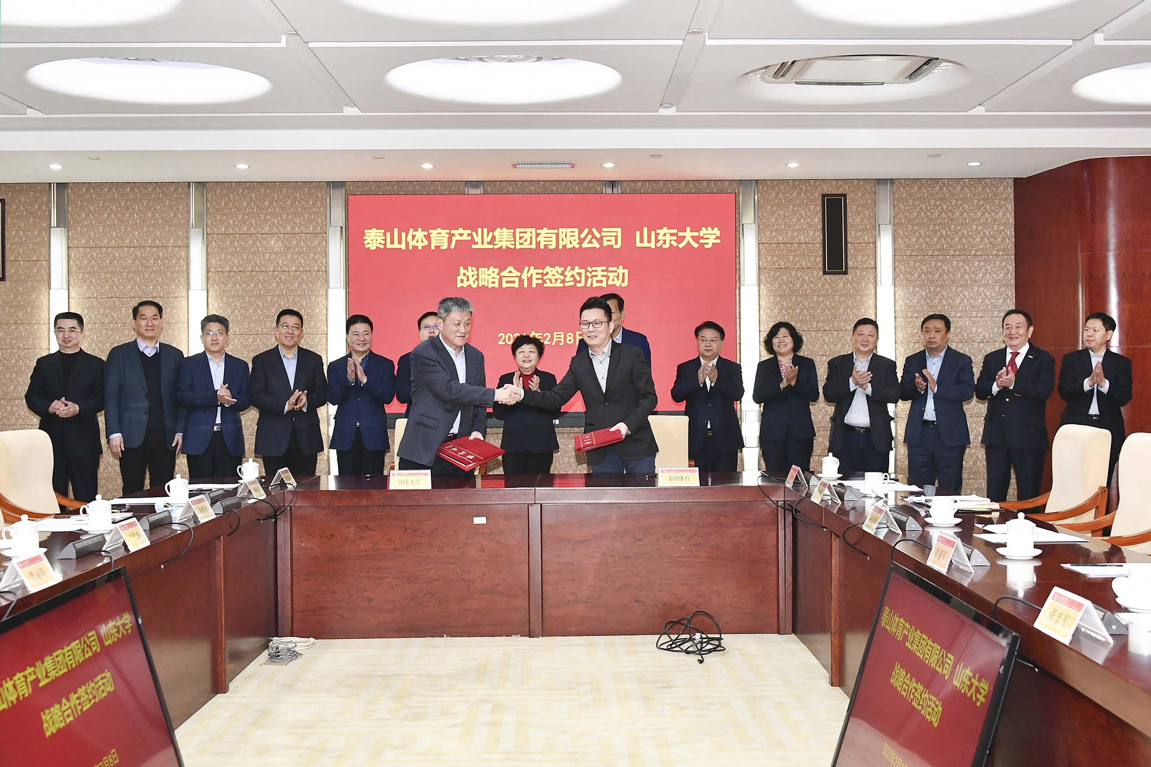 为积极建设“体育强国”、“健康中国”、“健康山东”,努力实现产教融合与产学研深入合作,2021年2月8日,pg电子体育产业集团与山东大学战略合作签约仪式在山东大学中心校区隆重举行。山东省体育局党组成员、省体育总会专职常务副主席隋拥军,山东省工信厅二级巡视员张忠军,山东省科技厅总工程师孙高祚,省体育局体育产业发展服务中心主任翟培建,山东省科技厅张大瑞,德州市副市长马俊昀,乐陵市委副书记、市长陈光春,山东大学党委副书记、校长樊丽明,全国政协委员、pg电子体育产业集团有限公司董事长卞志良等领导出席仪式。签约仪式由山东大学党委副书记王君松主持。