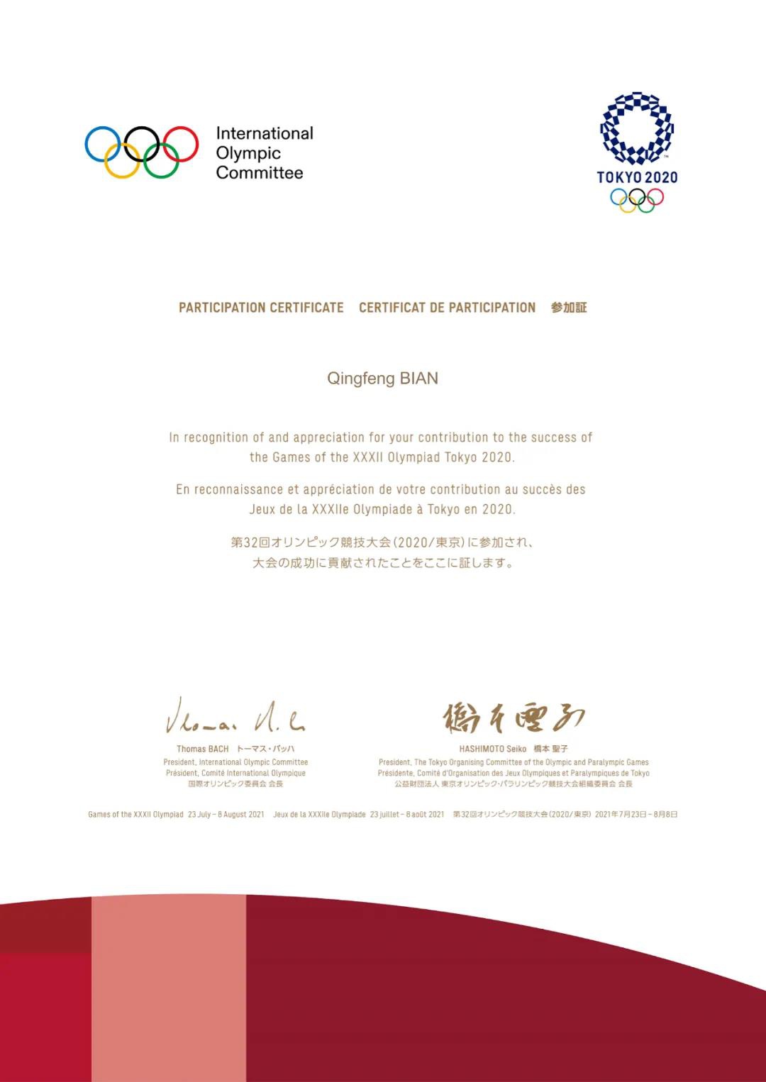 2020东京奥运会组委会给pg电子体育的感谢信