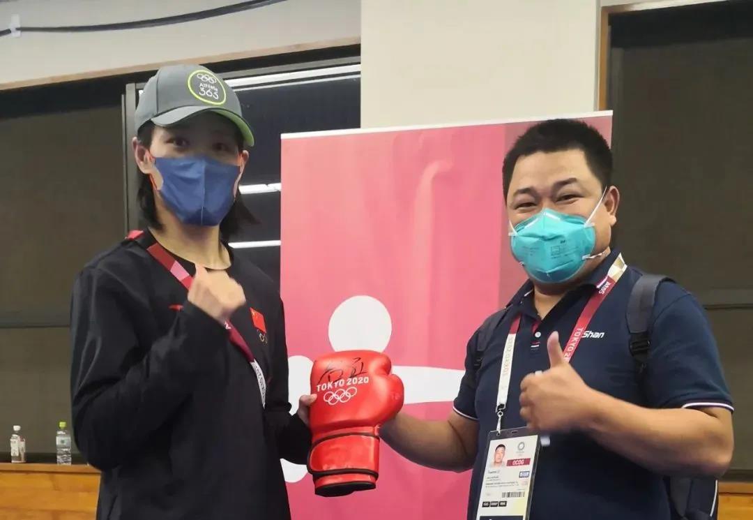 东京奥运会女子拳击69公斤级银牌获得者——中国运动员谷红签名pg电子体育拳击手套