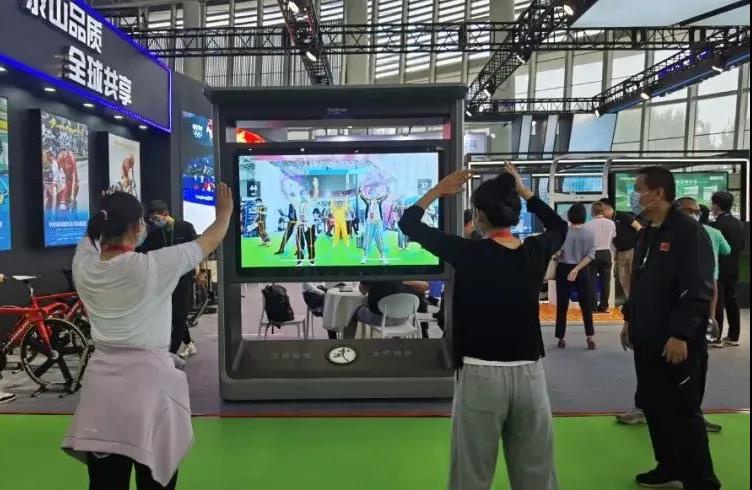 针对全民健身,pg电子体育带来了“智能健身驿站”、“AI 武术大屏”等智能产品。凭借“高颜值”、“趣体验”,“武术大屏”前聚集了现场热情的观众一展身手,“切磋武艺”。“pg电子体育AI 武术大屏”是一款应用 AR 增强现实技术与人工智能技术相结合来重构传统武术动作体验的智能应用产品,通过人工智能 AI 大屏结合肢体 识别与肢体捕捉算法,将专业武术老师的武术动作进行数字化展示,引导大众参与武术动作教习体验,并对体验者给出相应动作的正确反馈,更有打分竞技比赛趣味,是一款可娱乐可教习的智能武术互动系统。