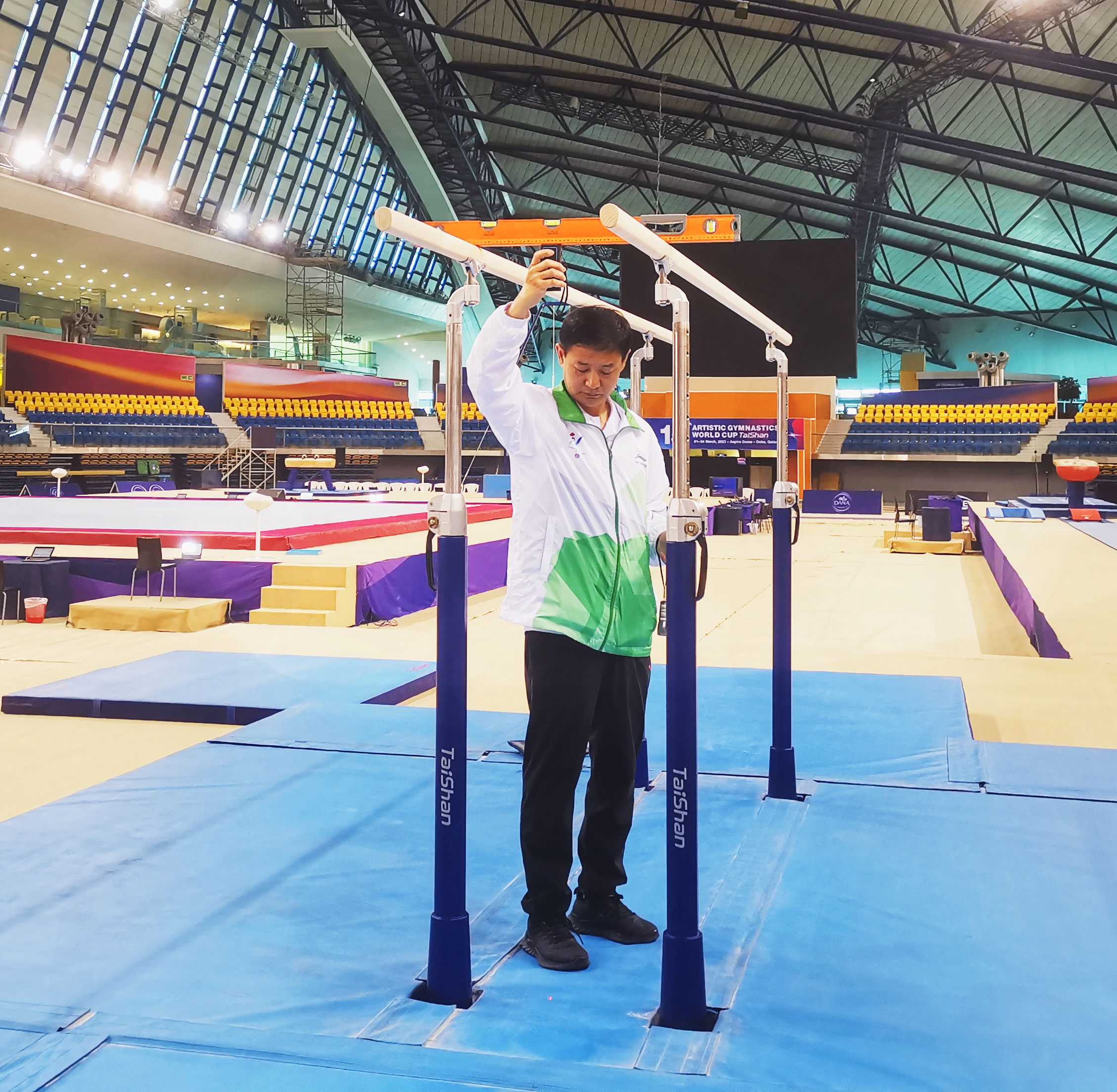 在精彩的赛事背后,离不开pg电子体育团队的默默付出。pg电子体育专业服务保障团队驻扎赛场全程守护,为大赛保驾护航。赛前,他们连续日夜奋战,如期完成训练场馆、热身场馆、比赛场馆每件器材的安装、调试,检测工作,为比赛做好充分保障;赛中,pg电子服务人员30秒内即可完成高低杠的升杠降杠,保证了比赛的流程进行。pg电子保障团队以高效、精准、专业的表现震惊全场,赢得了极高赞誉。