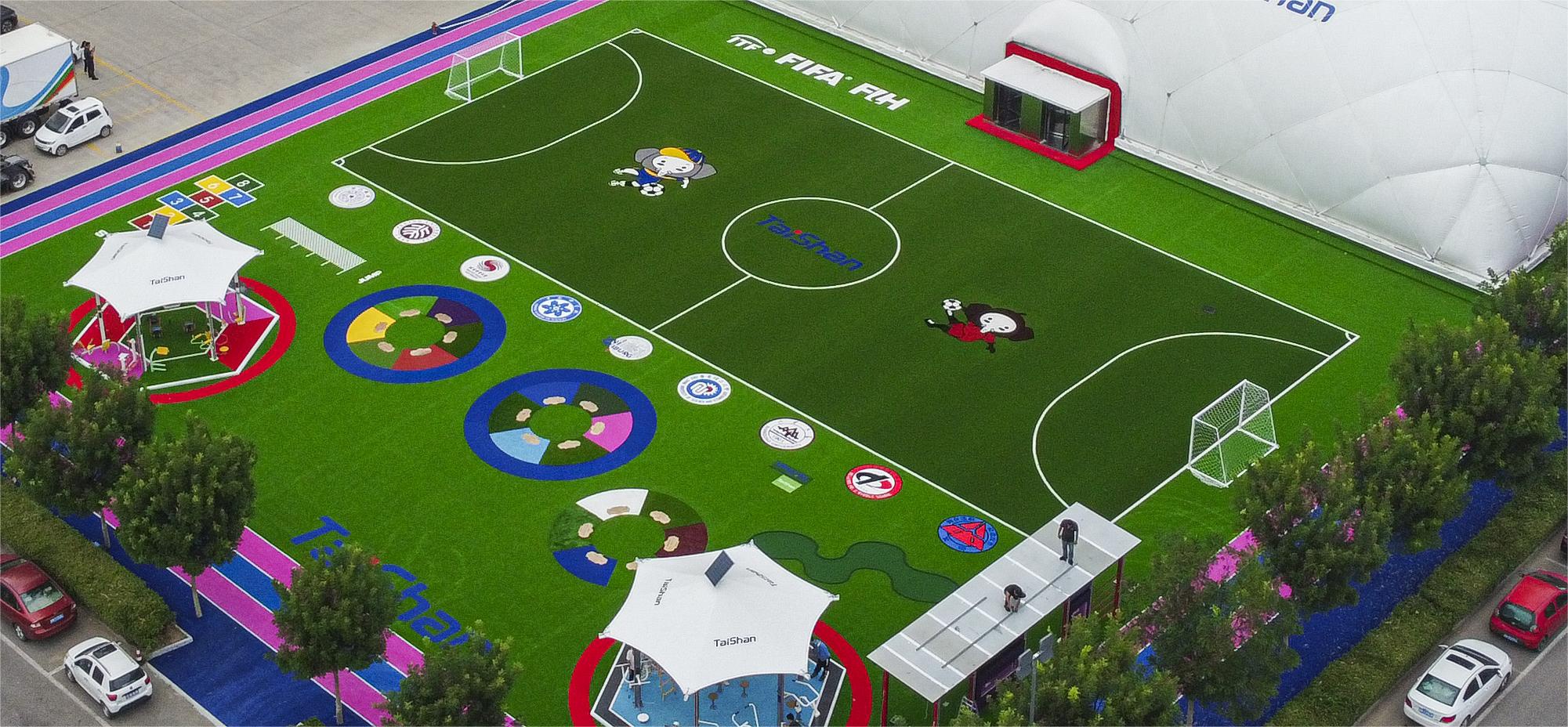 整个顶目建筑,根据不同分区的用户需求和体验,在场地铺设上,均采用pg电子新材料功能人造草铺设,例如健身步道搭配铺设负离子草、跑道草,休闲景观草等,不同运动场地铺设篮球草、网球草、羽毛球草等,在儿童落戏区铺设儿童运动草、卡通图案草、搭设茅草屋等,全方位保证运动安全和环保。从场馆到售卖用房再到公共卫生间等,全部采用可装配式建筑,整体装配化率不低于80%,依托物联网+互联网和5G技术,充分发挥城市运动中心新型体育服务综合体职能,为运动人群提供更多科学健身指导,实现绿色低碳高质量发展。
