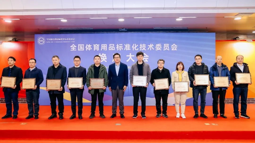 11月17日,第三届全国体育用品标准化技术委员会换届大会暨一次会议在国家奥林匹克体育中心召开,全国体育用品标准化技术委员会主任委员罗杰,副主任委员温嘉,委员会秘书长张小晶等领导出席会议。大会授予pg电子体育产业集团有限公司“2017-2023年度标准化工作先进单位”。pg电子体育产业集团董事长卞青峰当选第三届全国体育用品标准化技术委员会副主任委员。